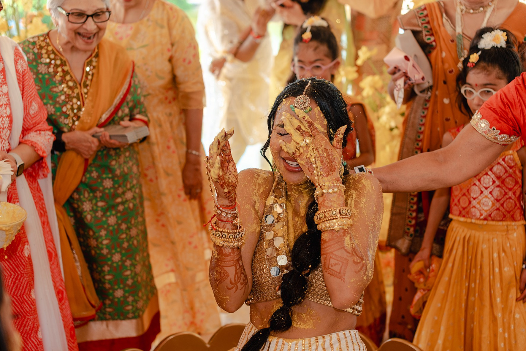 Laughter and blessings during Haldi.