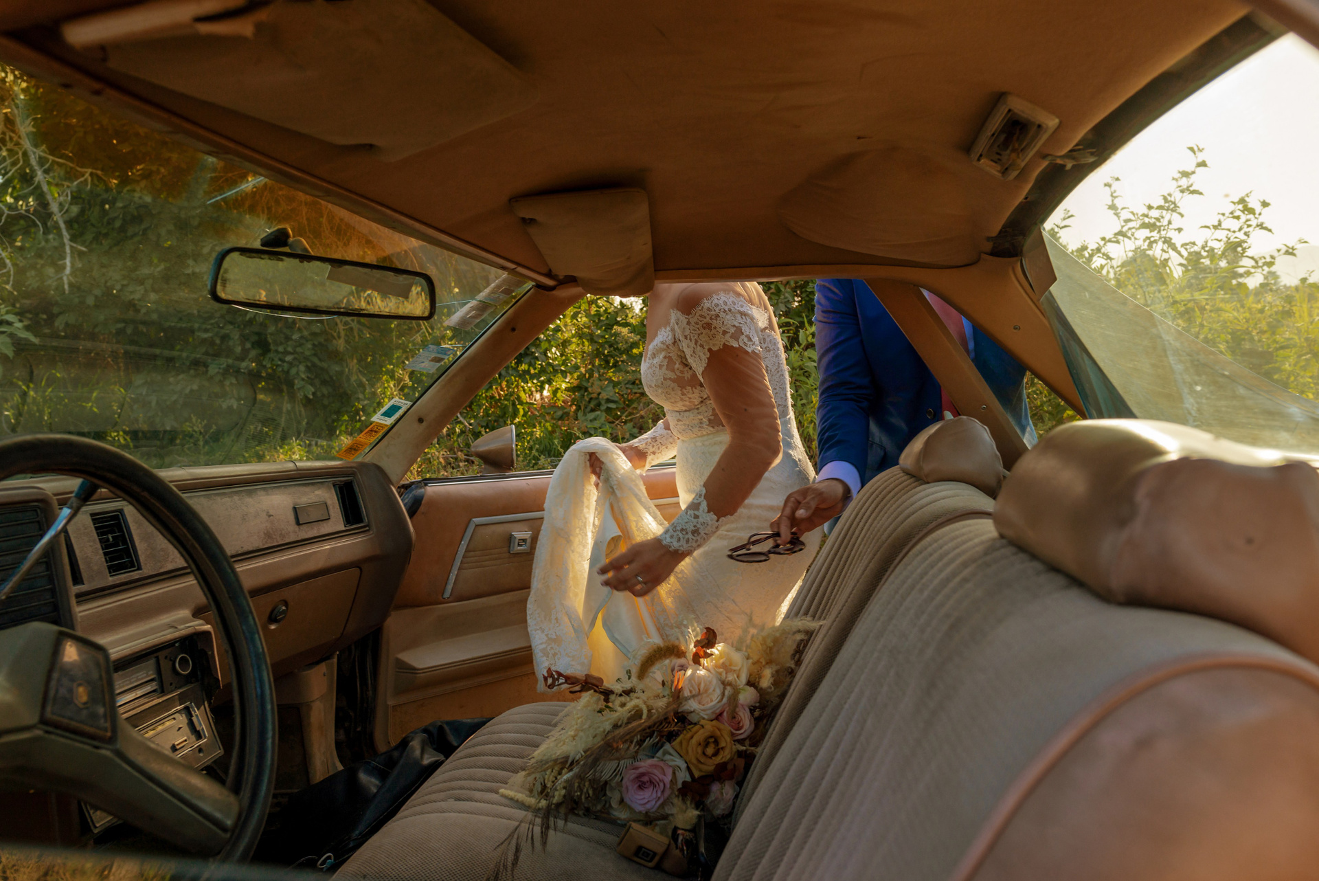 old downtown as a background for a wedding photoshoot
